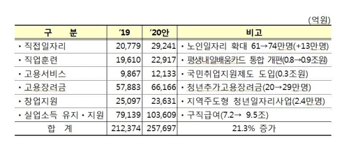 [2020¿¹»ê] ÀçÁ¤ÀÏÀÚ¸® 95¸¸5õ°³ ¸¸µç´Ù¡¦»ç»ó ÃÖ´ë 26Á¶ ÅõÀÔ